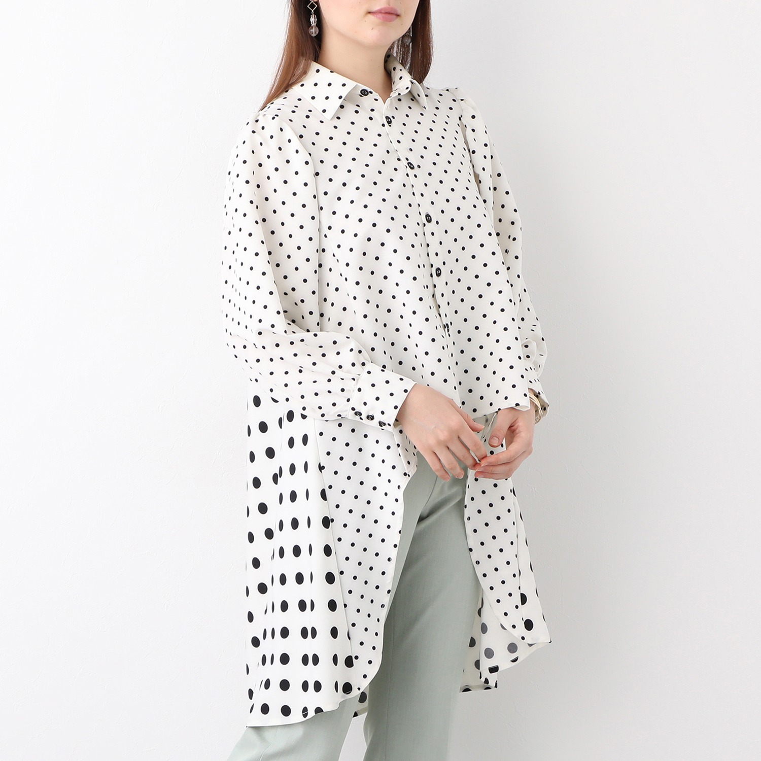 ギャルソン ラ レゾン ドット柄切替 イレギュラーヘムライン ロングブラウス ファッション シャツ ブラウス 長袖 通販 テレビショッピングのショップチャンネル